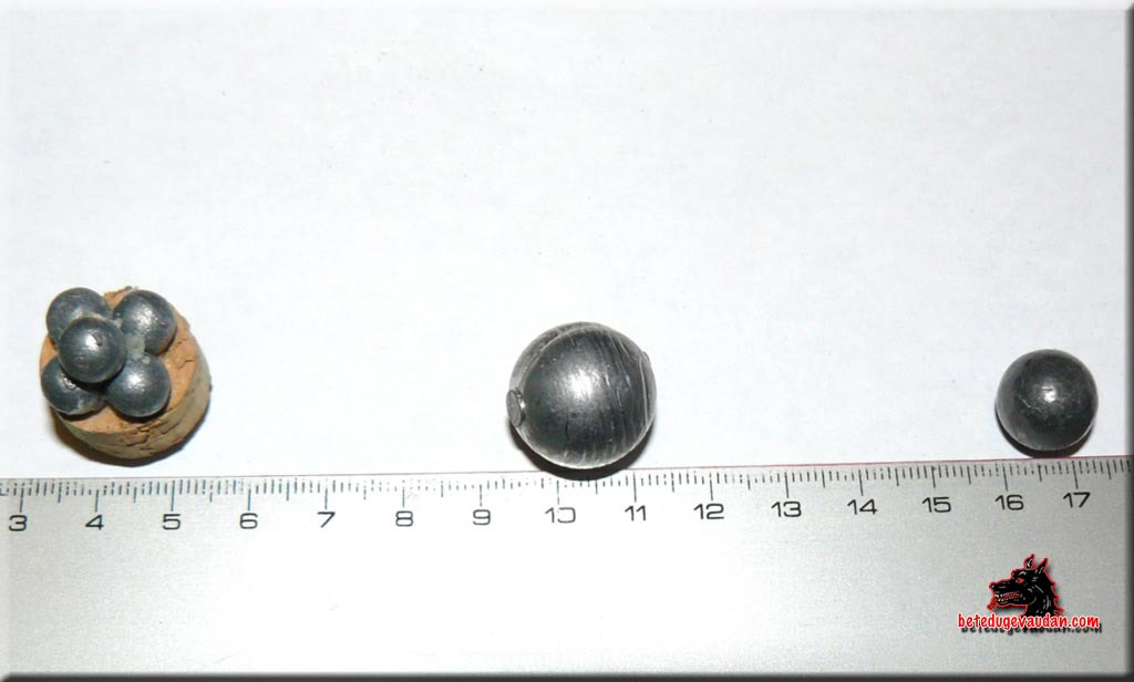 ‍These are lead balls of 5 to 9 mm (8 mm in Paris in 1741 according to the work of Mr. de Saint Rémy) with which guns were heavily loaded at the time.