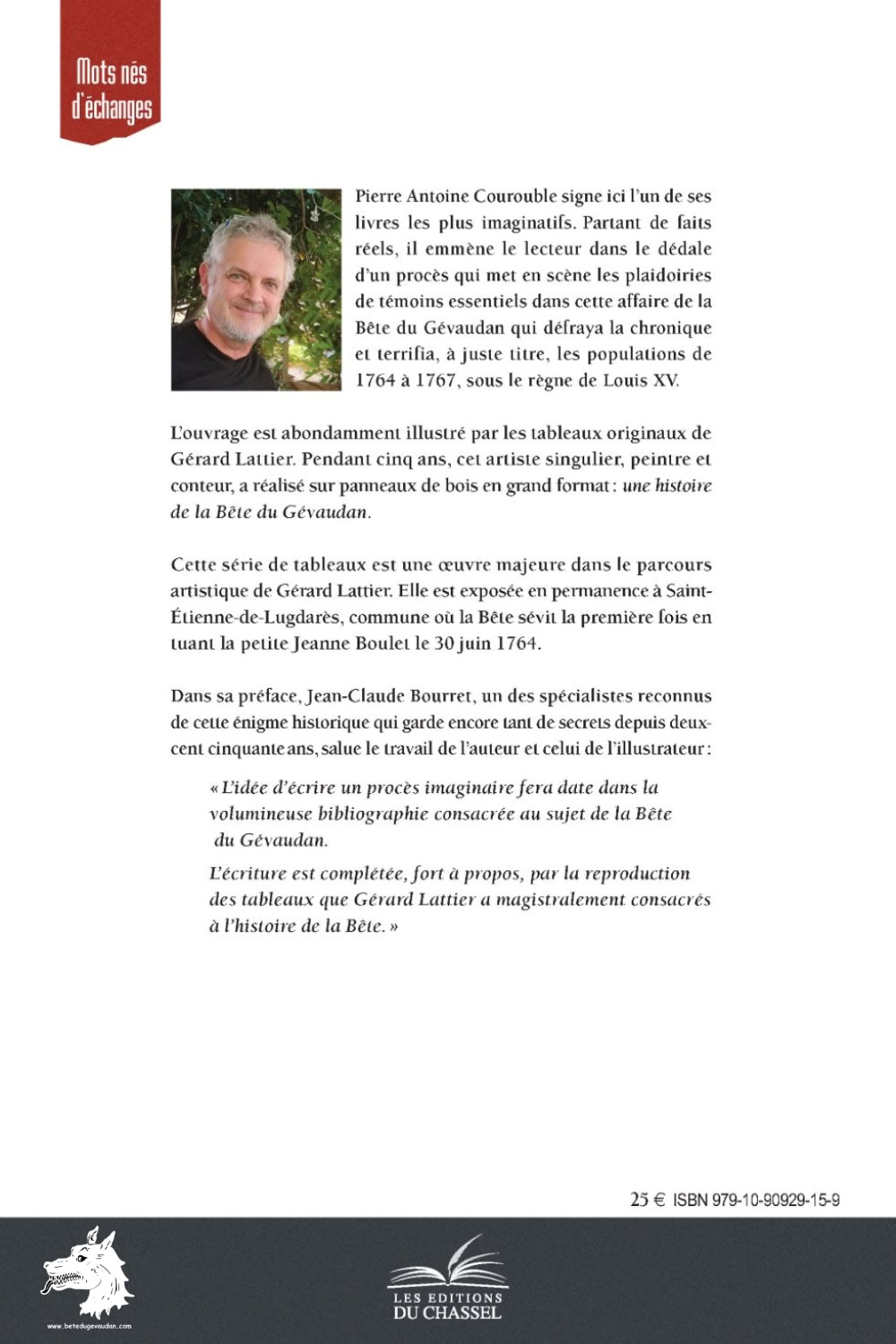 Pierre Antoine Courouble accompagne de sa plume un magnifique ouvrage d'art comportant une quarantaine de reproductions en couleurs des œuvres de l’artiste Gérard Lattier consacrées à la Bête du Gévaudan. L'auteur nous offre l'un de ses textes les plus originaux et imaginatifs.
