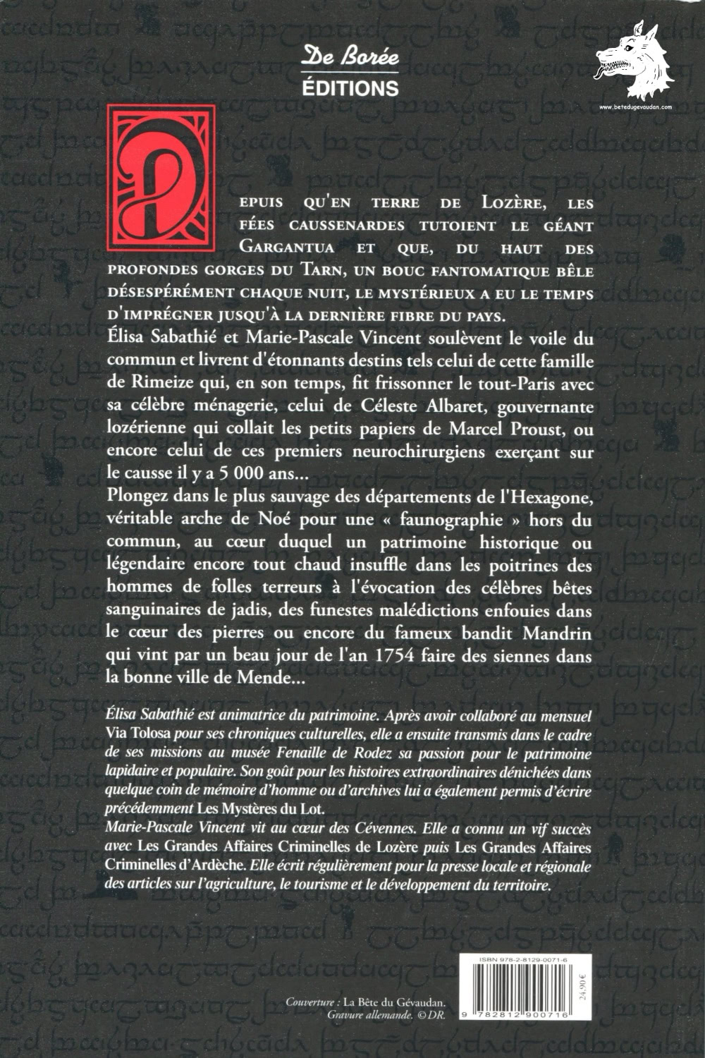 Depuis qu'en terre de Lozère, les fées caussenardes tutoient le géant Gargantua et que, du haut des profondes gorges du Tarn, un bouc fantomatique bêle désespérément chaque nuit, le mystérieux a eu le temps d'imprégner jusqu'à la dernière fibre du pays. Élisa Sabathié et Marie-Pascale Vincent soulèvent le voile du commun et livrent d'étonnants destins tels celui de cette famille de Rimeize qui, en son temps, fit frissonner le tout-Paris avec son impressionnante ménagerie, celui de Céleste Albaret, gouvernante lozèrienne qui collait les petits papiers de Marcel Proust, ou encore celui de ces premiers neurochirurgiens exerçant sur le causse il y a 5 000 ans... Vous serez plongés dans le plus sauvage des départements de l'Hexagone, véritable arche de Noé pour une « faunographie » hors du commun, au coeur duquel un patrimoine légendaire encore tout chaud insuffle dans les poitrines des hommes les terreurs les plus folles à l'évocation des célèbres bêtes sanguinaires de jadis, de l'ogre Jean Grin qui dévorait le foie des enfants, ou encore du fameux bandit Mandrin qui vint par un beau jour de l'an 1754 faire des siennes dans la bonne ville de Mende...